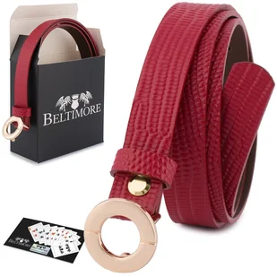 Skórzany pasek damski do spodni sukienki czerwona skóra nat 1,8 cm Beltimore O15 czerwony r.110-125 cm