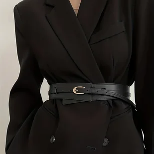 TEMU 1 szt. Damski Pasek z PU Skóry - Szeroki Pas z Metalową Klamrą, Czarny/Brązowy/Kawowy, Uniwersalny do Stylu Casual, Formalnego i Wieczorowego –