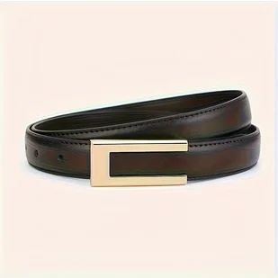 TEMU Damski pasek - Stylowy i smukły design, z złotą klamrą, dostępny w jasnobrązowym i czarnym kolorze, idealny do jeansów, garniturów i na co dzień