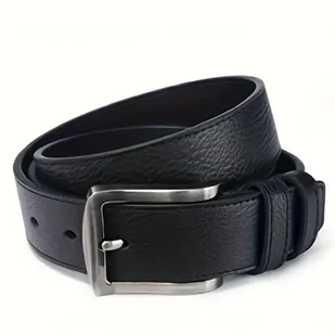 TEMU Męski Pasek z Prawdziwej Skóry z Solidną Klamrą z Stopu, Regulowany Czarny/Brązowy Pasek, Prosty Styl Casual Biznesowy, Prezent dla Przyjaciół,