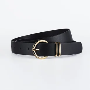 TEMU Stylowe Paski z Sztucznej Skóry dla Kobiet z Złotymi Klamrami - Wszechstronne Brązowe, Beżowe, Czarne i Białe Paski na Codzienne lub Formalne