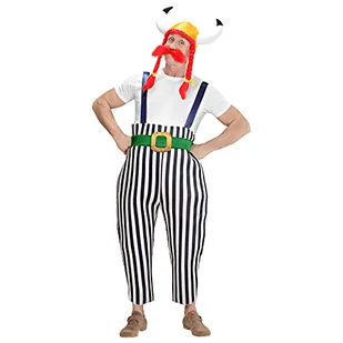 Widmann - Kostium Galów, spodnie maxi z szelkami, pasek, kask z warkoczami, wąsy, Wikingowie, impreza tematyczna, karnawał