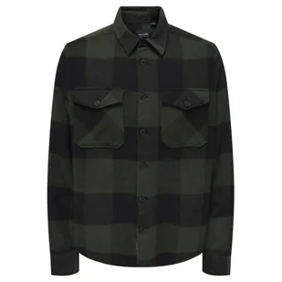Koszula męska Only&Sons Milo flanelowa w kratę zielono-czarna-M