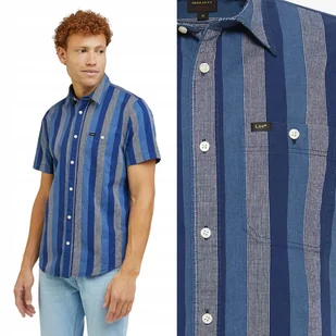 Lee Ss Leesure Shirt Navy Koszula W Paski Krótki Rękaw Regular Fit M