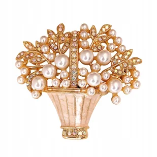 Broszka z cyrkoniami Perły Bukiet Kwiaty Złota Elegancka Duża Ozdoba