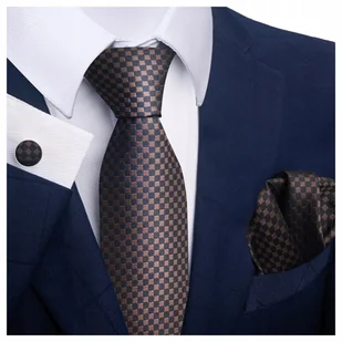 Elegancki zestaw – krawat + poszetka + spinki do mankietów Podkreśl swój styl i klasę dzięki eleganckiemu zestawowi składającego się z krawata, poszetki i spinek do mankietów. To doskonały wybór na ślub, uroczystości rodzinne, spotkania biznesowe czy eleganckie przyjęcia. Całość zapakowana jest w gustowne pudełko, dzięki czemu świetnie sprawdzi się również jako prezent. Cechy produktu: Krawat – klasyczny i stylowy, wykonany z wysokiej jakości materiału, który dobrze się układa i nadaje szyku każdej stylizacji.