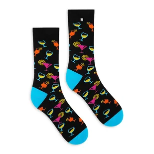Czarne skarpetki w kolorowe drinki. Kolorowe zabawne skarpetki oddające klimat zabawy - Party. Włącz pozytywne emocje! Drinki z palemką zawsze miło się kojar...