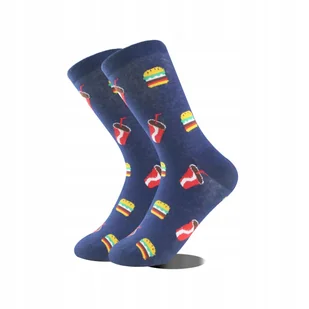 KOLOROWE ŚMIESZNE SKARPETKI SKARPETY HAMBURGER COLA GRANATOWE PREZENT