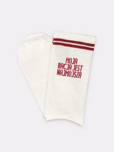 „Bo moja racja jest najmojsza!” – czyli definicja polskiej dyskusji domowej, politycznej i forumowej. Tekst z Dnia Świra, który uderza w punkt i robi to z uśmiechem przez zęby. Skarpetki dla tych, co zawsze mają ostatnie słowo – nawet jak go nie wypowiedzą. Dla fanów Marka Koterskiego, Adasia Miauczyńskiego i każdego, kto uważa, że jego racja to nie opinia, a fakt. To będzie superprezent dla taty i męża!