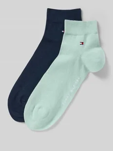 Skarpety męskie od Tommy Hilfiger;Efekt: jednolity kolor;Aplikacja: Nadruk z logo;Detale: wzmocniona pięta;Ściągacz: elastyczny;Multipak: zestaw 2 sztuk;Wykończenie materiału: Drobny splot;Materiał: Mieszanka bawełny