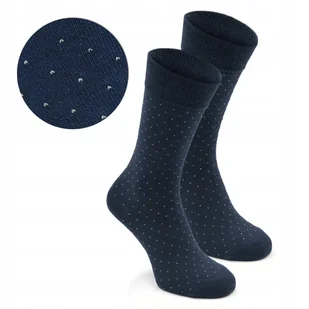 Skarpety męskie w kropki Wysokie, bawełniane i wygodne. Świetnie sprawdzą się na co dzień - zarówno do eleganckich butów, jak i tych sportowych. ✔ Kolor: granatowy ✔ Wzór: kropki ✔ Rozmiar: 41-45 ✔ Oddychające i miękkie - zapewniają komfort przez cały dzień ✔ Skład: