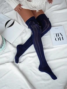 Zakolanówki Bawełniane Ażurowe Warkocz Ze Wstążką-37-41
