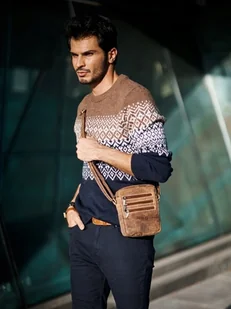 Zgrabna listonoszka męska, idealna na co dzień! Wykonana z dobrej jakości skóry naturalnej, zamocowana na szerokim, mocnym pasku, który nie ugniata ramienia. Na froncie praktyczne kieszonki na suwak. Dodatkowe kieszenie wewnątrz i z tyłu torby.