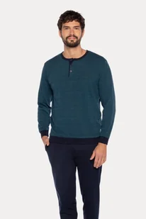 Ciepła męska piżama ORLANDO Męska piżama ORLANDO łączy nowoczesny design z wysokim komfortem i jest idealnym wyborem na chłodniejsze pory roku. Górna część wykonana jest z tkaniny o wykończeniu żakardowym, które nadaje materiałowi subtelną, trójwymiarową strukturę i elegancki wygląd. Dzięki temu piżama prezentuje się nie tylko wygodnie, ale i stylowo. To ciepła piżama, która przyjemnie ogrzeje w jesienne i zimowe wieczory, a jednocześnie pozostaje odpowiednio oddychająca i wygodna. Klasyczny krój z długim rękawem i długimi spodniami zapewnia maksymalną swobodę ruchów oraz komfort podczas snu i odpoczynku w domu.