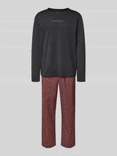 Zestaw piżamowy męski Calvin Klein Underwear;Czysta bawełna;Krój relaxed fit;Wyhaftowane logo;Okrągły dekolt;Design z długim rękawem;Elastyczny pas;Nadruk z logo na całej powierzchni