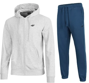 Męski dres sportowy 4F Marka/model: 4F SWSM1768 / TROM1139 Kolor: Bluza jasny szary melanż / spodnie morska zieleń Materiał: 80% bawełna, 20% poliester Gramatura: 300 gsm Nieocieplone wnętrze bluzy i spodni Kieszenie bluza: