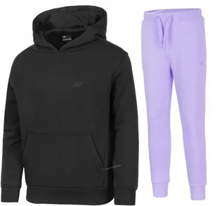 Dziewczęcy dres sportowy 4F Marka/model: 4F JSWSF1862 / JTROF515 Kolor: Bluza czarna / spodnie jasne fioletowe Materiał: 78% bawełna, 22% poliester, Ocieplane wnętrze bluzy i spodni 2 kieszenie w bluzie Kieszenie spodnie: 2 otwarte Ściągacz na dole i przy rękawach Sznurek w pasie Zintegrowany kaptur O marce: