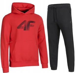 Męski dres sportowy 4F Marka/model: 4F SWSM1766 / TROM1140 Kolor: Bluza czerwona / spodnie czarne Materiał: 80% bawełna, 20% poliester Ocieplane wnętrze bluzy i spodni Kieszenie bluza: typu kangurek Kieszenie spodnie: