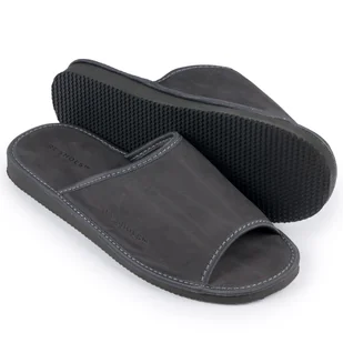 Męskie skórzane kapcie IRESHOES nubuk w kolorze grafitowym roz. 41-46, miękkie wygodne Witaj na mojej aukcji! Oferuję wyjątkowe męskie kapcie odkryte palce, ...