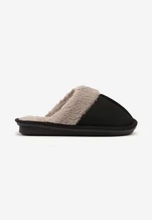 Czarne Klasyczne Kapcie Wsuwane z Futerkiem Selomir