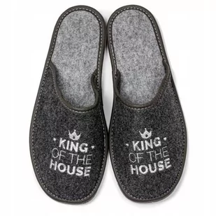 - Pantofle wykonane z ekologicznego filcu z haftowanym napisem na przodzie: KING OF THE HOUSE,