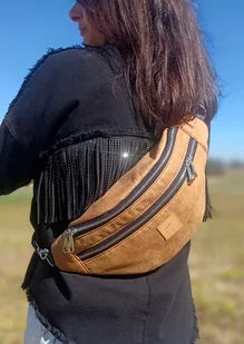 Bardzo duża nerka torebka damska z wysokiej jakości brązowego nubuku. Kultowy gadżet przydatny w czasie wszelkich wycieczek, koncertów i festiwali. Ze względu na rozmiar nerka jest przeznaczona do nosze ...