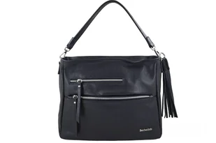 Dodatkowo, wewnątrz, wyodrębniono mniejszą zasuwaną kieszonkę oraz dwie otwarte mieszczące telefon, portfel oraz klucze. Oferowana w najnowszej kolekcji torebek klasycznych pojemna skórzana torba z modnym frędzlem, który jest dopinany i może być mocowany z dowolnej strony torebki, jest zasuwana oraz posiada srebrne okucia. Kolejnym atutem użytkowania torebki jest możliwość noszenia na krótszym dopinanym uchwycie bez regulacji (długość 43cm, wysokość 18cm, szerokość uchwytu 2cm) lub na długim, dopinanym i regulowanym pasku (maksymalna dł. 120cm, maksymalna wys. 60cm, szerokość paska 1,5cm). Dwie praktyczne zasuwane kieszonki z przodu torebki, ozdobione skórzanymi paseczkami, wyróżniają ten model spośród szerokiej oferty torebek klasycznych wykonanych z wysokiej jakości skóry naturalnej, z dbałością o każdy detal i najnowsze trendy. Wymiary torby: