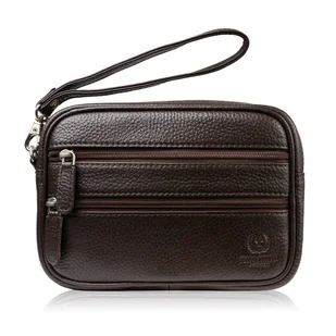 Skórzana saszetka męska do ręki lub na nadgarstek Always Wild brązowa elegancka na suwak kieszonki na telefon portfel skóra bydlęca nubukowa