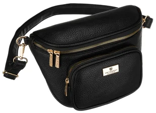 Saszetka nerka damska czarna PETERSON mała miejska na ramię lub przez biodra listonoszka kieszonki na drobiazgi telefon złote okucia odpinany pasek ..