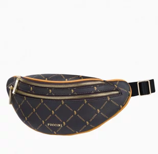 Damska saszetka – nerka marki Puccini została wykonana z wysokiej jakości skóry ekologicznej o lekko groszkowej fakturze. Model będzie stanowić niebanalne dopełnienie każdej stylizacji: zarówno klasycznej jak i streetwearowej. Niewielkich rozmiarów saszetka swobodnie pomieści najpotrzebniejsze akcesoria codziennego użytku. Jednokomorowy fason zapinany jest zamkiem błyskawicznym, a w jego wnętrzu znajdziemy małą kieszeń zamykaną suwakiem. Nerka posiada regulowany pasek, dzięki czemu możemy ją nosić na dwa sposoby: na biodrach lub crossbody. Przód modelu zdobi dyskretne logo Puccini oraz funkcjonalna kieszeń na drobiazgi zapinana zamkiem błyskawicznym. Wszelkie elementy metalowe są w kolorze złotym, natomiast wnętrze saszetki wyścielane jest logowanym poliestrem.