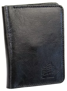 Etui Na Karty Dokumenty PolskaGalanteria Duże CZARNY Skóra Naturalna Pionowe z Miejscem Na Bilon MOTYW STATEK 12 x 9 [cm]