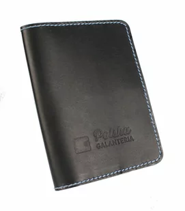 Etui Na Karty Dokumenty PolskaGalanteria Duże Skóra Naturalna Pionowe CZARNE Z BŁĘKITNĄ NITKĄ