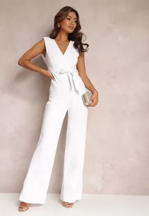 Biały Kombinezon z Kopertowym Dekoltem i Wiązaniem w Talii Vannessa