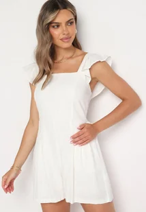 Biały Kombinezon Bawełniany na Ramiączkach z Falbanką i Krótkimi Nogawkami Liadia
