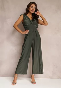 Ciemnozielony Kombinezon z Szerokimi Nogawkami i Gumkami w Talii Adriannae