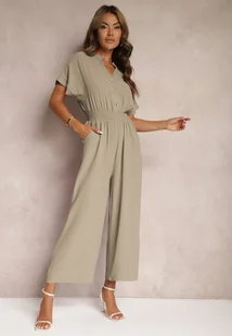 Ciemnozielony Taliowany Kombinezon z Wiskozy Zapinany na Guziki Frisea
