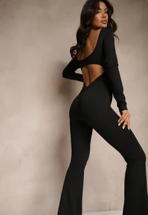 Czarny Kombinezon Bodycon z Usztywnianymi Miseczkami i Wycięciami na Plecach Calinori