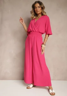 Fuksjowy Taliowany Kombinezon z Zakładkowym Dekoltem i Gumką w Pasie Vimalynna