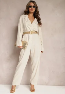 Jasnobeżowy Kombinezon z Paskiem z Plecionki Kopertową Górą i Zwężającymi się Nogawkami Avnja