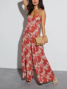 Czerwony Kombinezon z Krótkimi Nogawkami i Kopertowym Dekoltem z Wiskozy Polisse