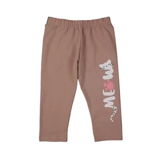 Legginsy 3/4 dla dziewczynki w kolorze beżowym. Na jednej nogawce znajduje się nadruk z kotkiem. Legginsy mają elastyczną gumkę w pasie. Wyprodukowane z wysokiej jakości bawełny z dodatkiem elastanu Legginsy dziewczęce 3/4 marki Tup Tup beżowe z kotkiem elastyczna gumka w pasie skład surowcowy: 92% bawełna 8% elastan przepis prania: