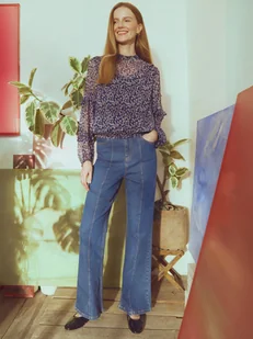 Spodnie damskie Top Secret z lekko szerszymi nogawkami. Spodnie damskie typu flare z lekko szerszymi nogawkami zakończonymi przeszyciem. Posiadają one praktyczne kieszenie umiejscowione zarówno z przodu, jak i również z tyłu oraz zapięcie z przodu na guzik oraz suwak. Dużego uroku dodają im pionowe przeszycia na całości oraz wykonanie z dobrej gatunkowo oraz trwałej tkaniny jeansowej. Świetnie wyglądają one połączone zarówno z elegancką damską bluzeczką, jak i również sportowym T-shirtem, sprawdzając się szczególnie dobrze w przeróżnych stylizacjach casualowych.