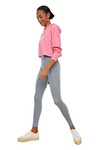 Trendyol Damskie szare legginsy z dzianiny z wysokim stanem i odzyskiwaniem, Szary, L