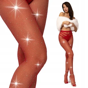 Rajstopy KABARETKI czerwone kryształki CYRKONIE SEXY eleganckie ONE SIZE Czerwone Seksowne Rajstopy Kabaretki – Odważny Akcent dla Każdej Stylizacji Podkręć ...