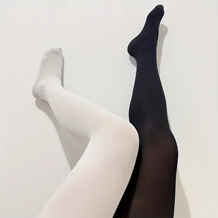 TEMU 1 Para Eleganckich Asymetrycznych Dwukolorowych Rajstop Jumbo dla Kobiet - Pełna Noga Czarno-Białe Ombre Przezroczyste Rajstopy (Rozmiar 20/D),
