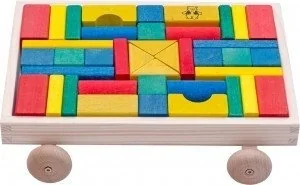 B&B KLOCKI DREWNIANE W WÓZKU KOLOROWE 40 ELEMENTÓW 1360