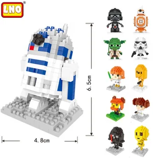 B&B LNO klocki Yoda Mini klocki Darth Vader DIY Model 8 R2-D2 plastikowe cegły edukacyjne zabawki dla