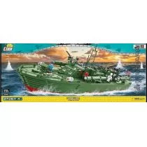 Amerykańska łódź patrolowa PT-109 to największy i najbardziej szczegółowy model w historii firmy COBI! Rekordowe 3726 elementów umożliwiło realistyczne odtworzenie historycznej jednostki w modelarskiej skali 1:35 (skala pasująca do figurek). Model mierzy aż 72 cm długości i zawiera w zestawie klockową podstawkę z podpisem. Model zaskakuje również w pełni odwzorowanym wnętrzem! Po zdjęciu pokładu ukazują się naszym oczom kajuty załogi, pomieszczenia techniczne i maszynownia wraz z wyposażeniem! Tego w COBI jeszcze nie było! Model prezentuje się majestatycznie, został zaprojektowany z kunsztem i ogromną dbałością o szczegóły! Całość zestawu uzupełniają cztery figurki inspirowane historycznymi członkami załogi. W zestawie zastosowano trwałe nadruki, które nie ścierają się nawet w trakcie intensywnego użytkowania. Ruchome elementy wyposażenia, zdejmowany pokład, odwzorowane uzbrojenie i realistyczny kształt sprawiają, że model ten z pewnością stanie się ekskluzywnym prezentem, który zadowoli nie tylko pasjonatów historii i militariów, ale również wszystkich entuzjastów klocków konstrukcyjnych oraz wybrednych kolekcjonerów. Obok tak ogromnej i pięknej łodzi nie da się przejść obojętnie! Zbuduj historię, klocek po klocku!