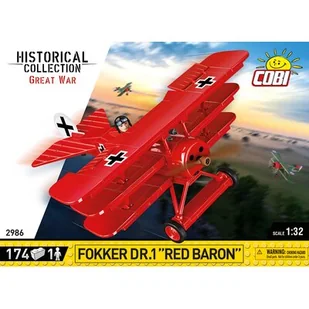 Fokker Dr. 1 Red Baron Czerwony Baron to zdecydowanie najbardziej rozpoznawalny samolot z okresu I wojny światowej. Fokker Dr. 1 to niemiecki, niesamowicie zwrotny (jak na tamte czasy), ale dość powolny trójpłatowiec. Był pilotowany przez słynnego Manfreda von Richthofena, prawdziwego asa lotnictwa czasów Wielkiej Wojny, który wzbudzał powszechny strach, ale i uznanie. Model z klocków konstrukcyjnych COBI starannie odtwarza w nowej skali 1: 32, historyczny samolot z okresu Wielkiej Wojny.