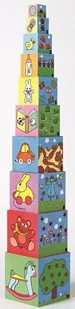 Zestaw klocków z kolorowymi obrazkami. Z klocków maluch może zbudować wieżę lub inną ciekawą budowlę, może także dzięki temu że klocki mają różną wielkość włożyć jeden w drugi. Zabawa doskonale rozwinie u dziecka wyobraźnię, koncentrację oraz precyzję w działaniu. Klocki mają z jednej strony namalowane zwierzątka  oraz przedmioty z najbliższego otoczenia, a z drugiej cyferki, dzięki czemu fantastycznie sprawdzą się także w czasie nauki liczenia. Zestaw składa się z 10 klocków wykonanych z najwyższej jakości materiałów renomowanej francuskiej firmy Djeco. Całość zapakowana jest w poręczne pudełeczko z uchwytem, dzięki czemu klocki są wygodne zarówno w przechowywaniu, jak i w przenoszeniu.